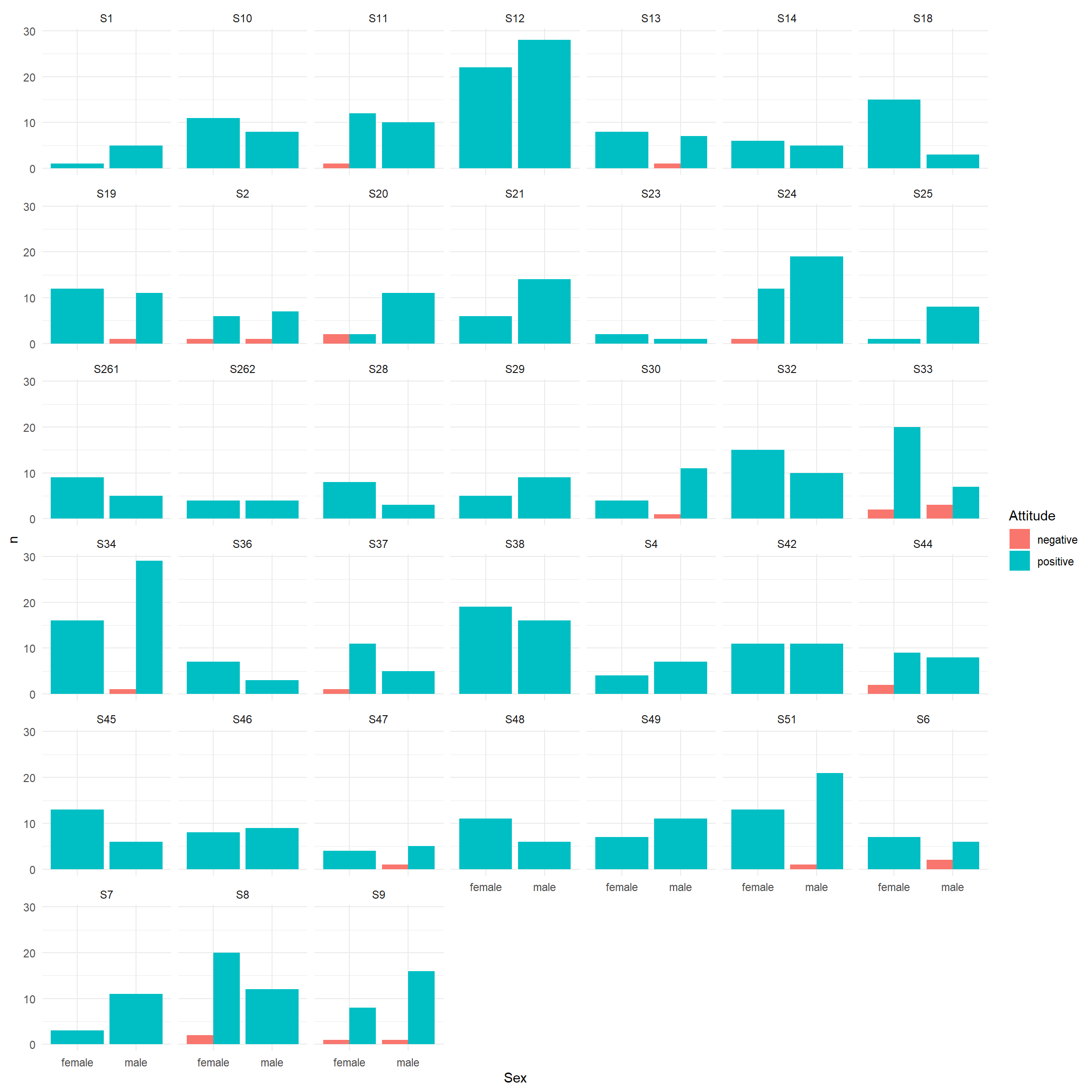 ssa <- fb |> group_by(School, Sex) |> count(Attitude)